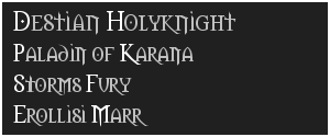 | [ Erollisi Marr, The Queen of Love ] [ Rants and Flames ] |